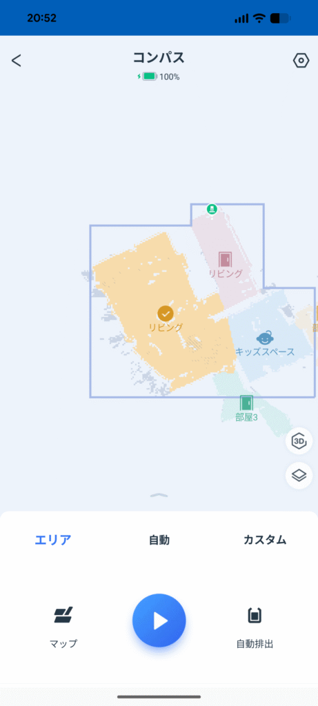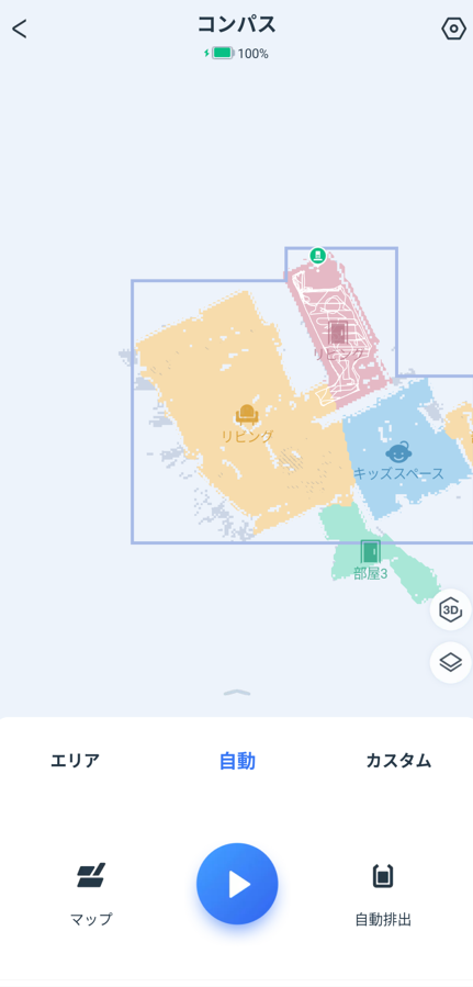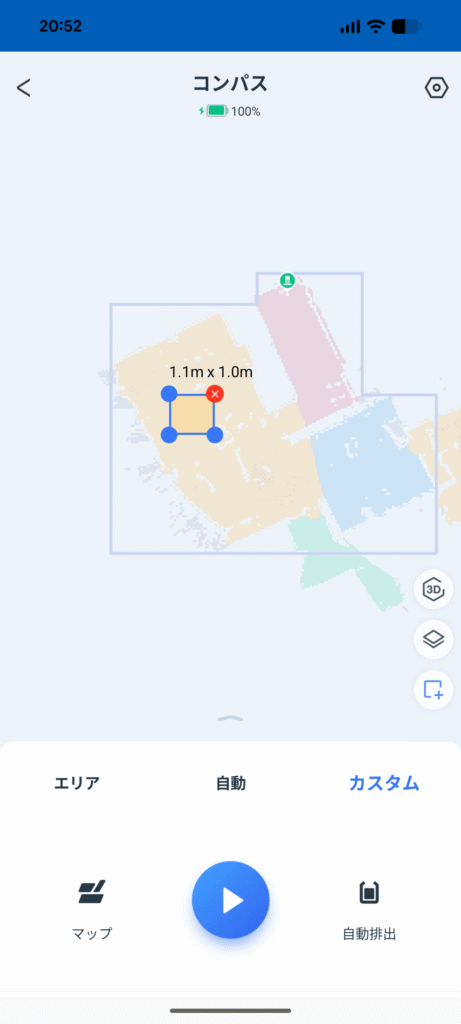 カスタムボタンを押せば、指定したエリアだけ掃除。